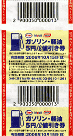 これはセブンイレブンとエッソ、モービル、【ゼネラル(5012)】との共同企画で、割引をしてもらえるのは実際に「ガソリン・軽油 値引き券受付中」と表記されているキャンペーンののぼりがあるスタンドに限定される。値引き券が印刷されているレシートを提出することで、店頭の現金価格から値引きされるが、給油の前に券を提示することが必要。また、値引き券は5リットル以上の給油につき1枚限りで有効。